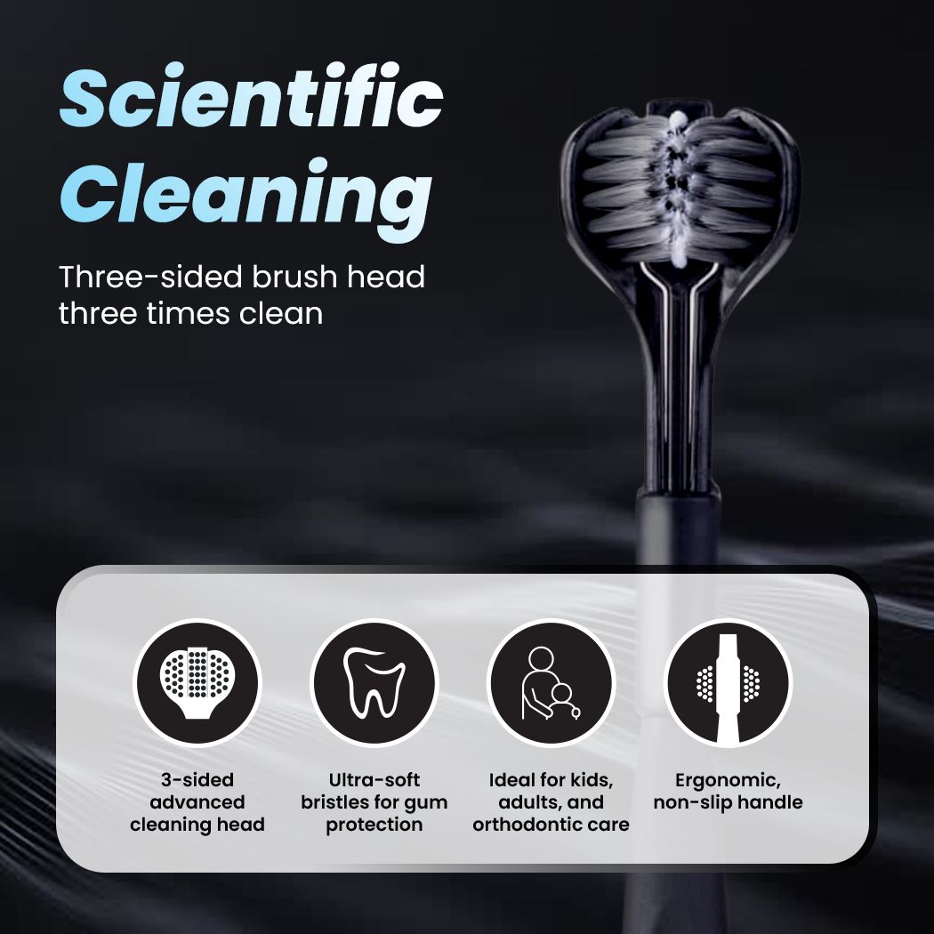 OralZen’s 3-sided U-shaped brush cleans the front, back, and top of your teeth all at